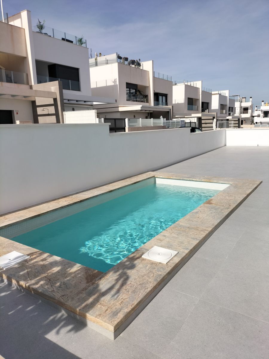 Bungalowy posiadają 3 sypialnie i 2 łazienki oraz zostały zaprojektowane we współczesnym stylu obejmującym w pełni wyposażoną kuchnię i salon z jadalnią. Inwestycja znajduje się w Orihuela Costa, w otoczeniu wszystkich usług, obiektów sportowych, w pobliżu kilku pól golfowych i 5 minut od plaż.