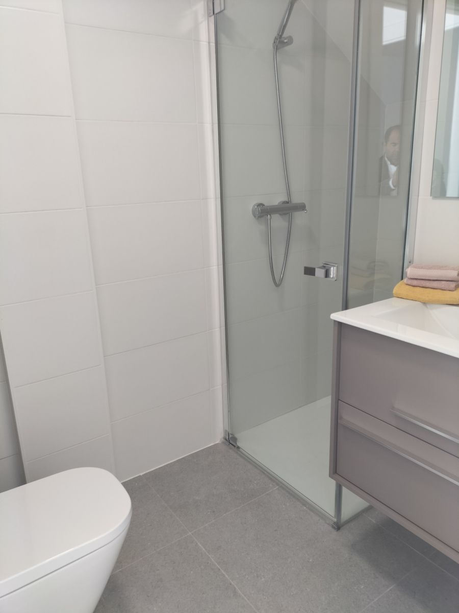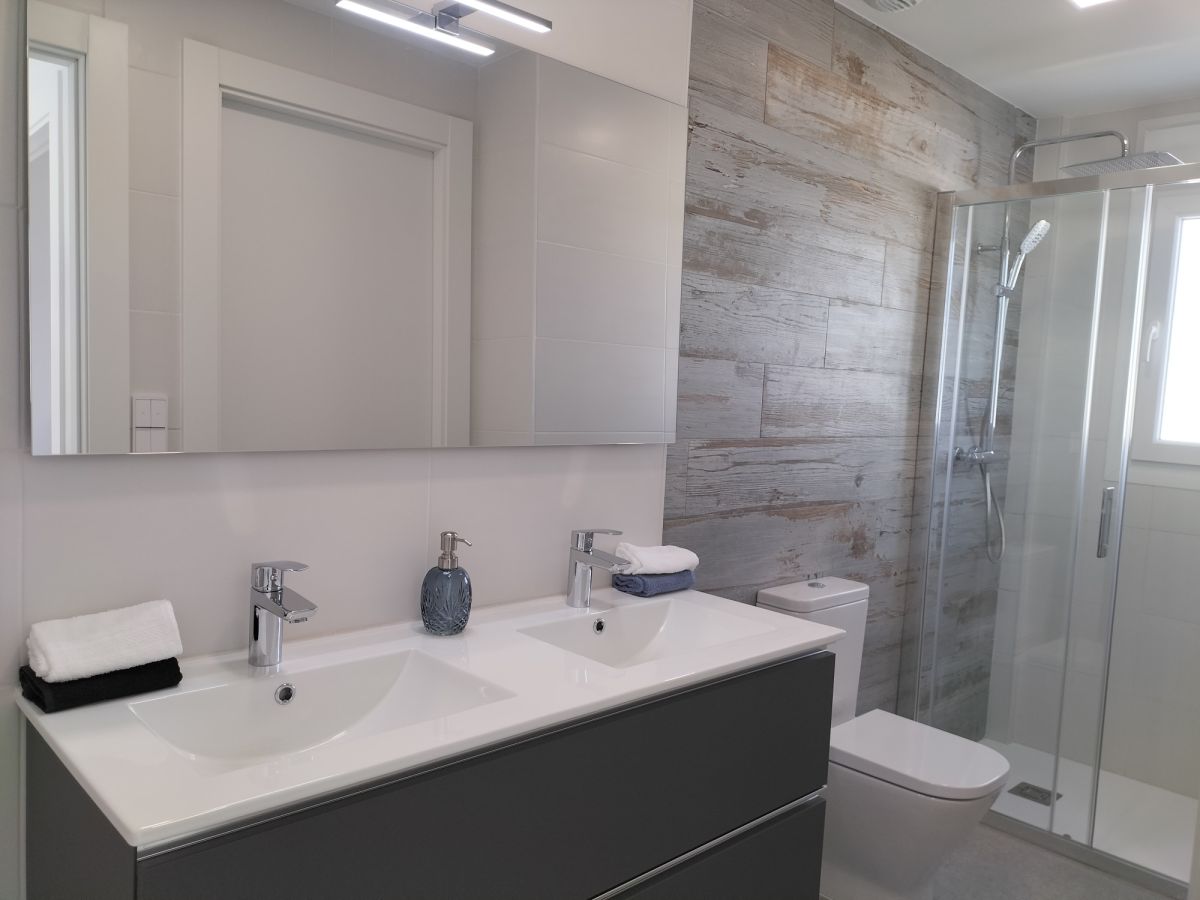 - Fully equipped bathrooms with vanity unit, toilet, illuminated mirror, shower, and shower screens.