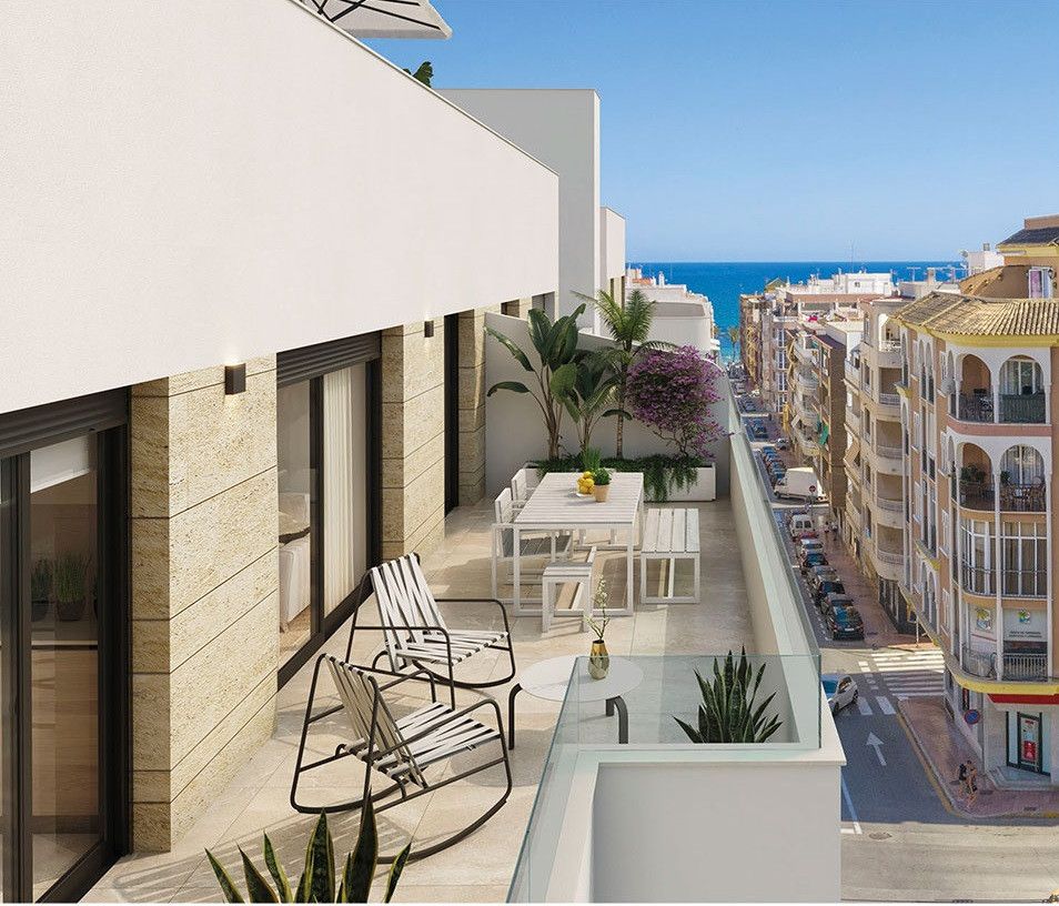 A modern apartment complex in Torrevieja, located just 300 meters from the beach and near restaurants, shops, and the city center. The ideal location offers easy access to all essential services while ensuring peace and comfort of living near the sea. The building is equipped with a pool featuring a waterfall, spacious common areas, and a meeting room. Additionally, there are parking spaces and electric vehicle charging stations available. With high-quality materials and attention to detail, this is the perfect place to live year-round, offering easy access to the beach and city amenities. The surrounding area boasts numerous walking trails, and the opportunity to relax on terraces with sea views makes everyday life exceptional.