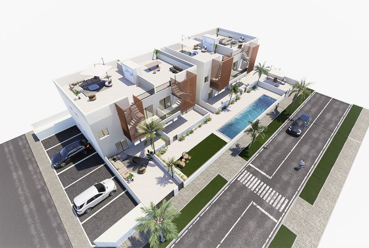 This is a luxurious complex of 8 bungalows with private pools, where you can enjoy the sun all day, every day of the year, as well as private parking on the plot. The properties feature 2 bedrooms and 2 bathrooms, as well as a beautiful and large terrace with a pool. This fantastic residence has been designed in a contemporary style with an open concept, including a fully equipped kitchen and a living room with a dining area.