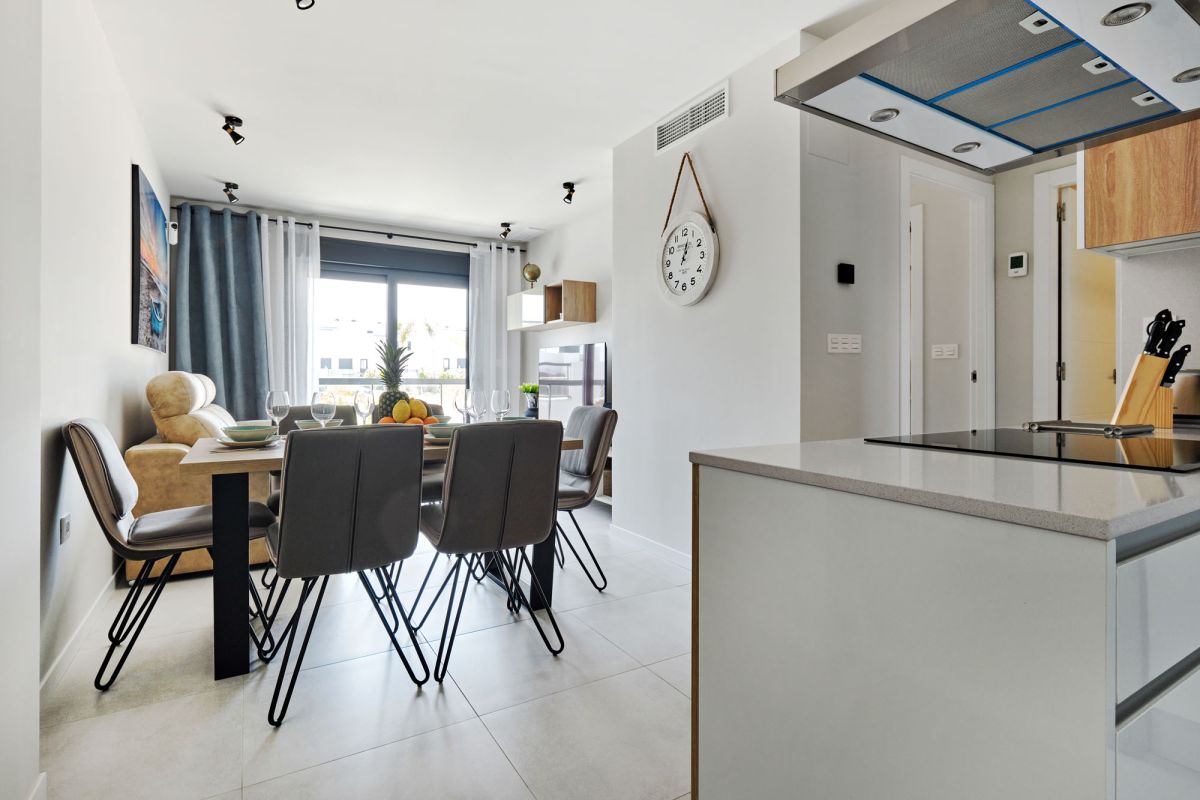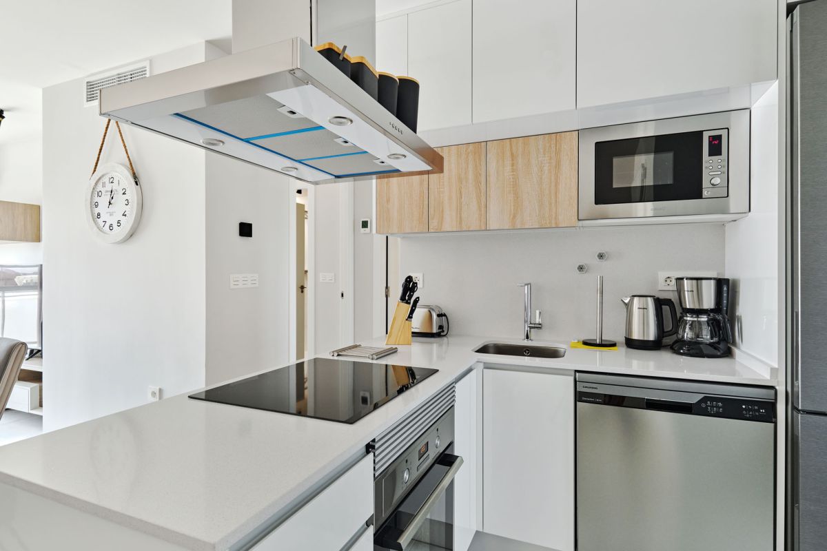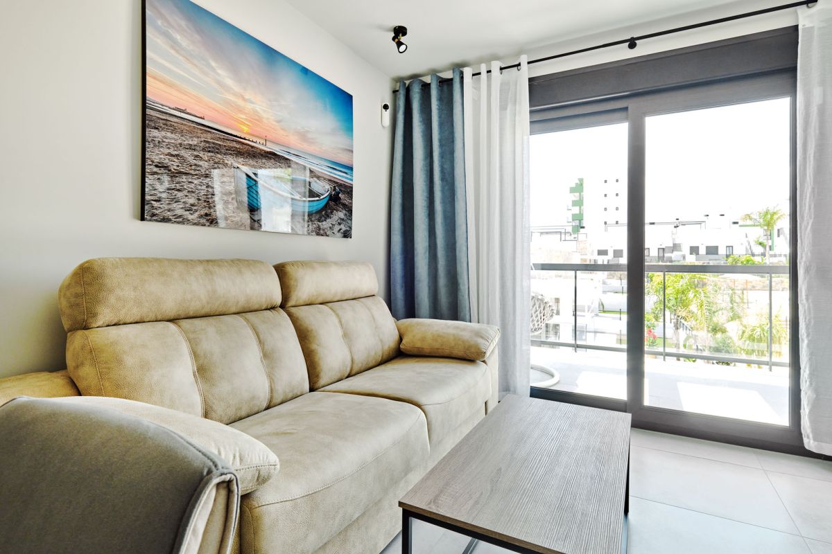 We present a modern and fully equipped apartment, located in a picturesque setting, just 750 metres from one of the most beautiful beaches of the Mediterranean Sea in Mil Palmeras. The apartment consists of two comfortable bedrooms, a spacious living room with an open-plan kitchen, and two bathrooms. The well-thought-out layout of the rooms ensures comfort both for permanent living and for holiday rentals. A major advantage of the apartment is the private terrace/solarium, ideal for relaxation in the Mediterranean climate. Within the residential complex there are two year-round swimming pools, green areas, and recreational zones. Additionally, the property includes a private parking space. The complex is monitored and gated, ensuring safety and comfort.