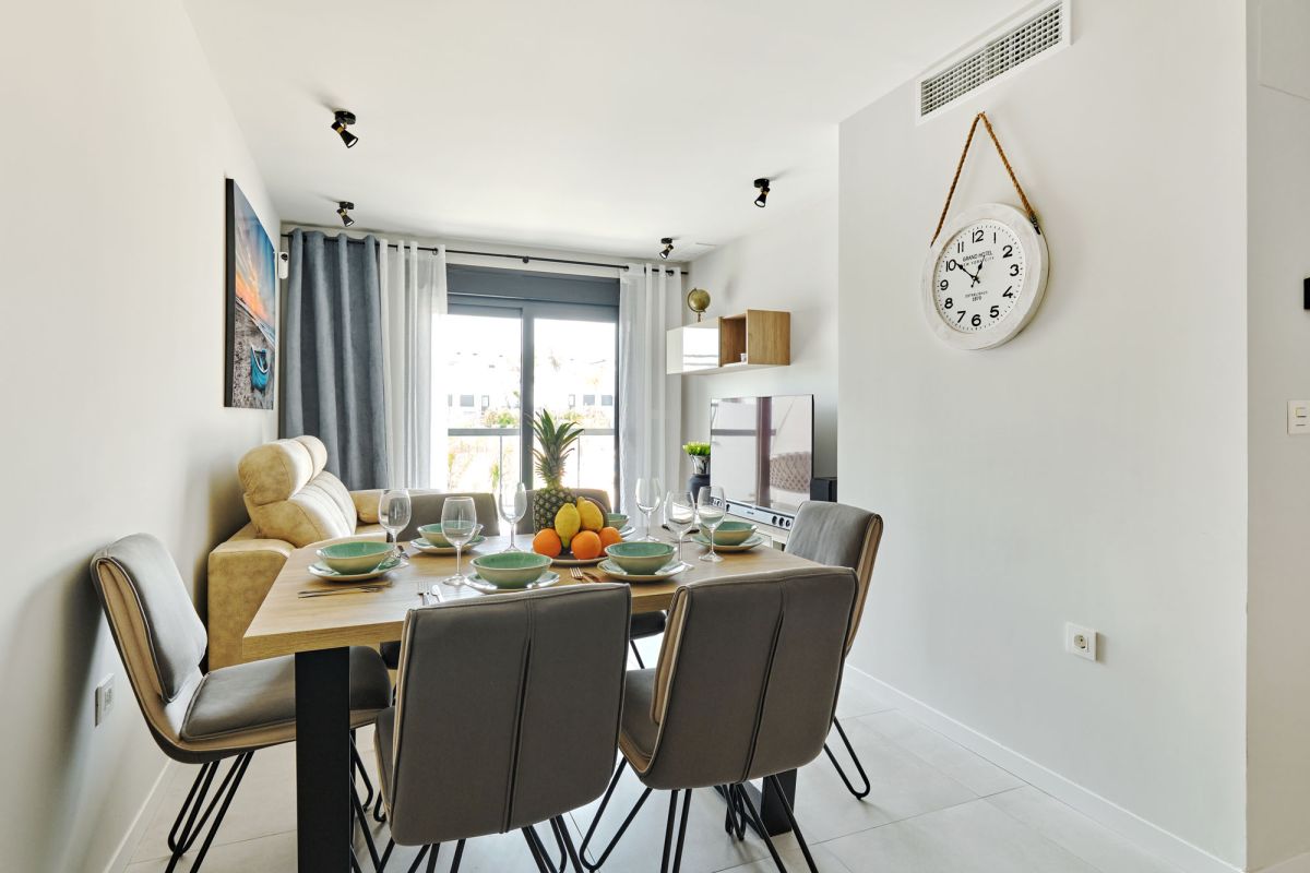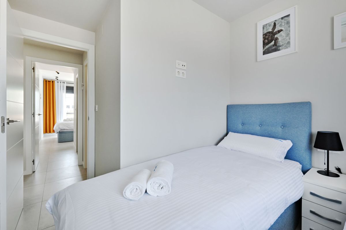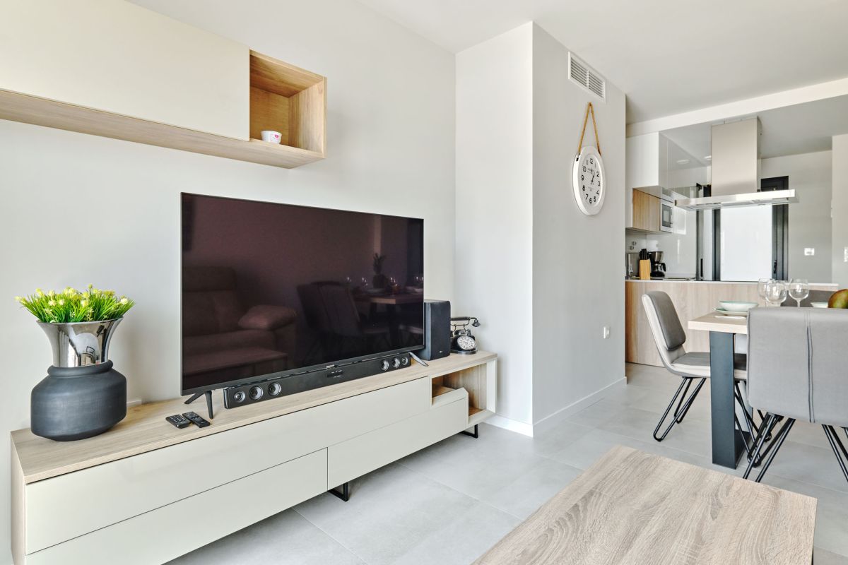 Przedstawiamy nowoczesny i w pełni wyposażony apartament, położony w malowniczym otoczeniu, zaledwie 750 metrów od jednej z najpiękniejszych plaż Morza Śródziemnego w Mil Palmeras. Apartament składa się z dwóch komfortowych sypialni, przestronnego salonu z aneksem kuchennym oraz dwóch łazienek. Przemyślany układ pomieszczeń zapewnia wygodę zarówno do zamieszkania, jak i pod wynajem wakacyjny. Dużym atutem apartamentu jest prywatny taras/solarium, idealny do relaksu w śródziemnomorskim klimacie. Na terenie osiedla znajdują się dwa całoroczne baseny, tereny zielone oraz strefy rekreacyjne. Dodatkowo nieruchomość posiada prywatne miejsce parkingowe. Osiedle jest monitorowane i zamknięte, co gwarantuje bezpieczeństwo i komfort.