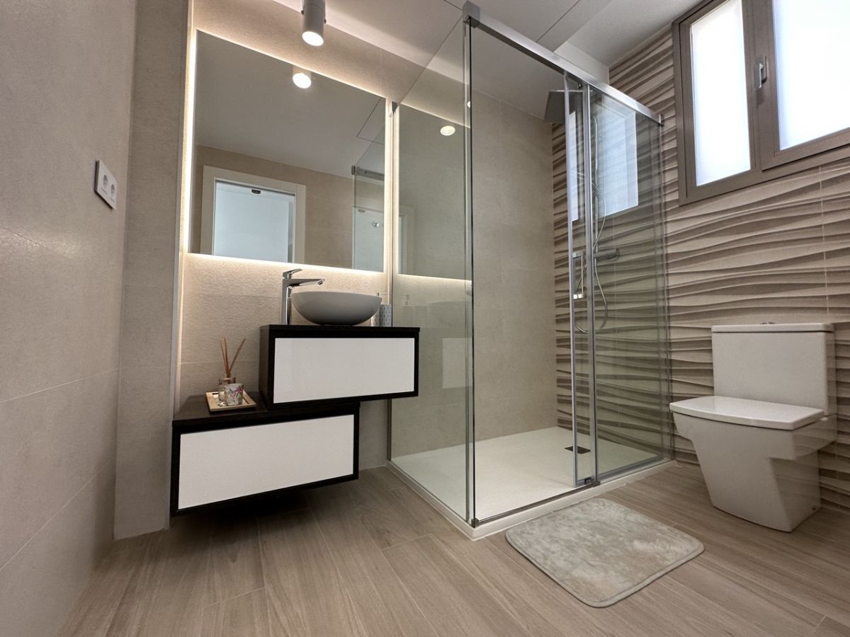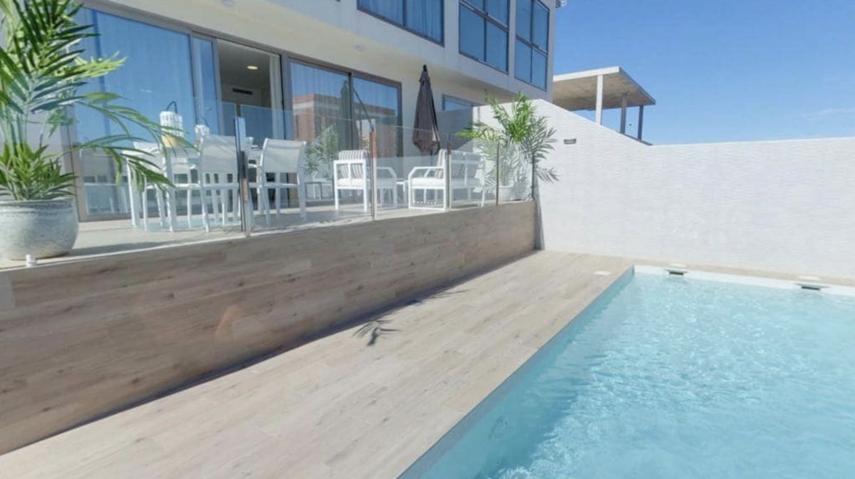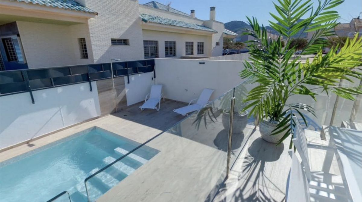 The villa has 3 double bedrooms, 3 luxury bathrooms, open plan living area with modern fitted kitchen, breakfast bar/island. The large 'hide and slide' patio doors open to reveal a large private pool with lots of surrounding decking. Airzone A-C is mounted and can be controlled via the app.