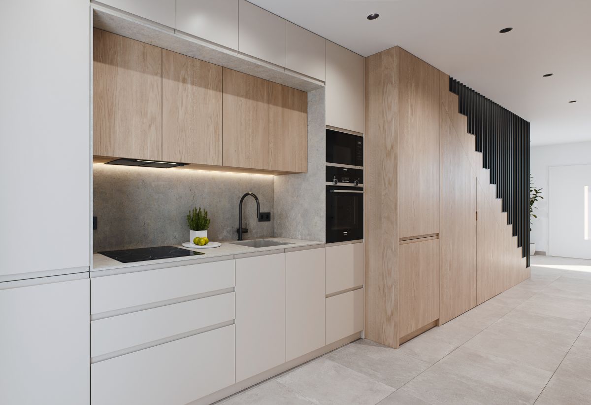 Each property comprises 3 bedrooms and 2 bathrooms, with a walk-in wardrobe in the main bedroom. The properties are designed on two levels plus a rooftop solarium, in a modern and open-concept style, including a fully equipped kitchen and a living room with a dining area.