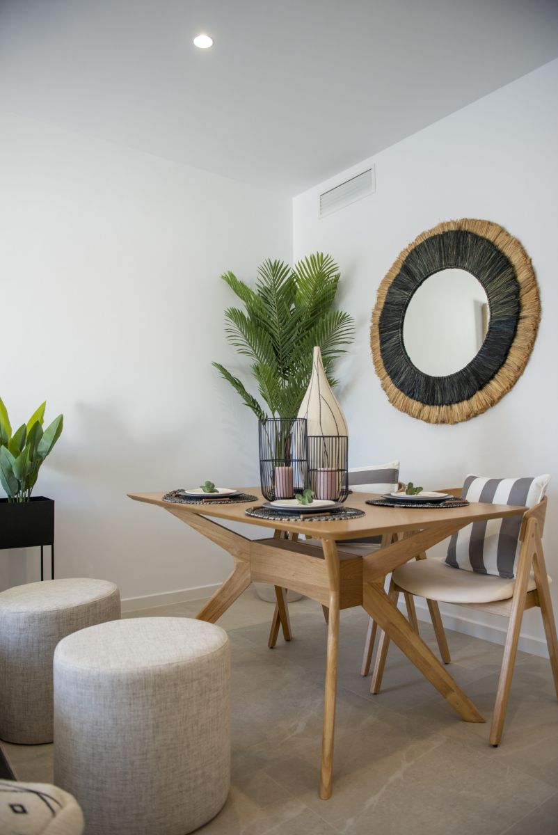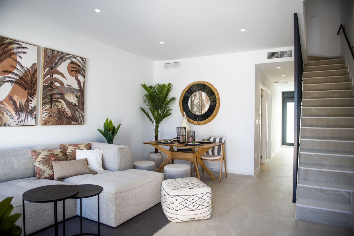 Każda nieruchomość posiada 3 sypialnie i 2 łazienki oraz garderobę w głównej sypialni. Nieruchomości zostały zaprojektowane na dwóch poziomach plus solarium na piętrze, w nowoczesnym stylu i otwartej koncepcji, obejmującej w pełni wyposażoną kuchnię i salon z jadalnią.