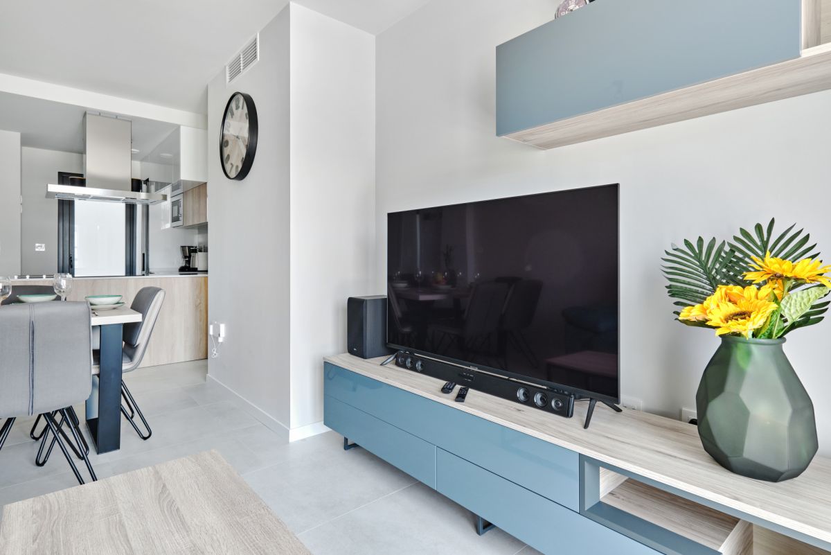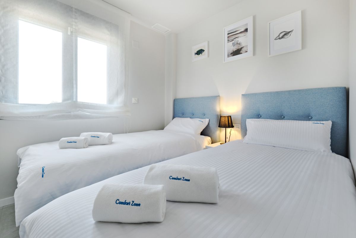 Oferujemy elegancki, w pełni umeblowany apartament położony w spokojnej części Mil Palmeras, około 750 metrów od piaszczystej plaży Morza Śródziemnego. Nieruchomość składa się z dwóch jasnych sypialni, salonu z nowoczesną kuchnią oraz dwóch funkcjonalnych łazienek. Przemyślany układ wnętrz zapewnia komfort zarówno do zamieszkania całorocznego, jak i pod wynajem wakacyjny. Dużym atutem jest prywatny taras/solarium, idealny do wypoczynku w śródziemnomorskim klimacie.