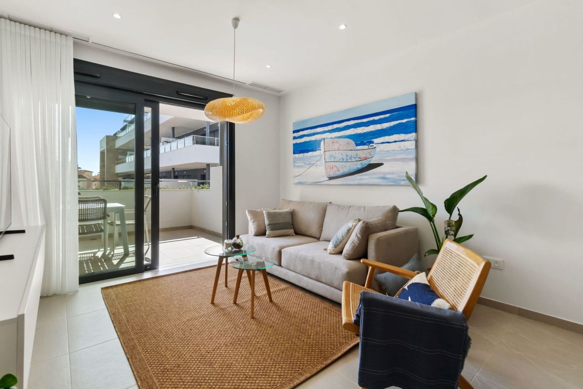 This modern apartment is located in the prestigious Flamenca Village complex, offering exceptional comfort and elegance. The spacious living room with large windows opens onto a sunny terrace, perfect for relaxation and family gatherings. The kitchen is fully equipped with high-quality household appliances, and the three bedrooms and two bathrooms have been designed with great attention to detail. The interior, created by an interior designer, combines modern style with a cozy atmosphere. The apartment also includes a utility room and a private, extended parking space in the underground garage. Large glass surfaces provide excellent natural lighting and offer views of the green areas of the complex. Flamenca Village is an exclusive development with a rich infrastructure - swimming pools, jacuzzi, gym, café, and beautifully maintained gardens. The entire complex creates a harmonious space that combines luxury, comfort, and relaxation in one of the most desirable locations on the Costa Blanca.