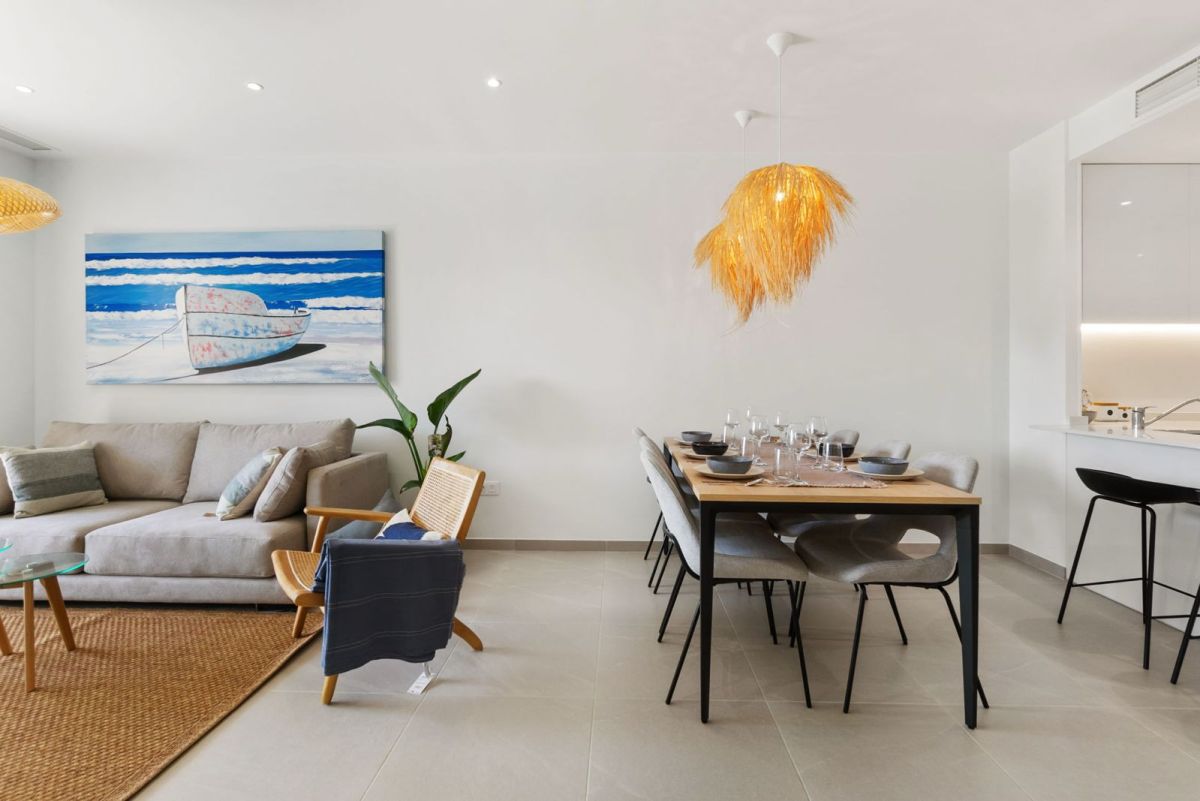 Ten nowoczesny apartament znajduje się w prestiżowym kompleksie Flamenca Village, oferującym wyjątkowy komfort i elegancję. Przestronny salon z dużymi oknami prowadzi na słoneczny taras, idealny do odpoczynku i spotkań z rodziną. Kuchnia jest w pełni wyposażona w wysokiej jakości sprzęty AGD, a trzy sypialnie i dwie łazienki zostały zaprojektowane z dbałością o detale. Wnętrze urządzone przez projektanta łączy nowoczesny styl z przytulną atmosferą. W apartamencie znajduje się również pomieszczenie gospodarcze oraz prywatne, poszerzone miejsce parkingowe w garażu podziemnym. Duże przeszklenia zapewniają doskonałe naturalne oświetlenie i widok na zielone tereny kompleksu. Flamenca Village to ekskluzywna inwestycja z bogatą infrastrukturą - basenami, jacuzzi, siłownią, kawiarnią oraz pięknie utrzymanymi ogrodami. Całość tworzy harmonijną przestrzeń, która łączy luksus, komfort i relaks w jednym z najbardziej pożądanych miejsc na Costa Blanca.