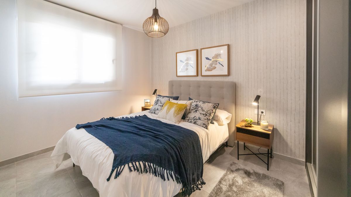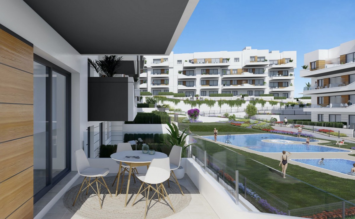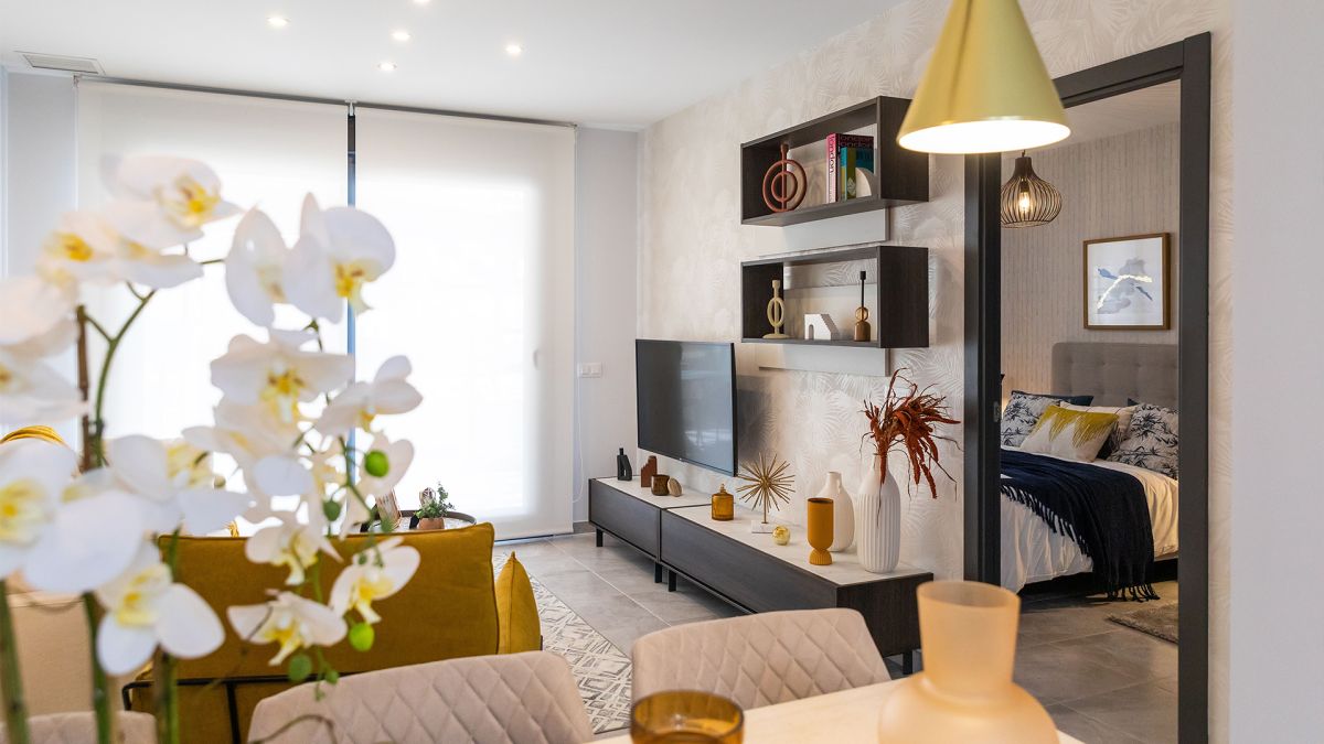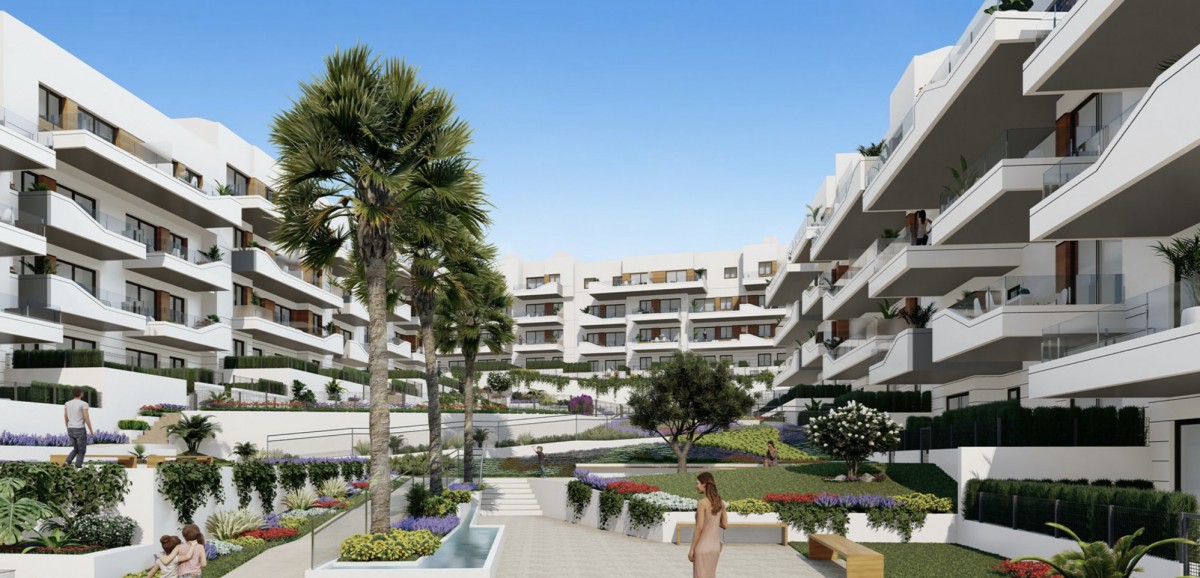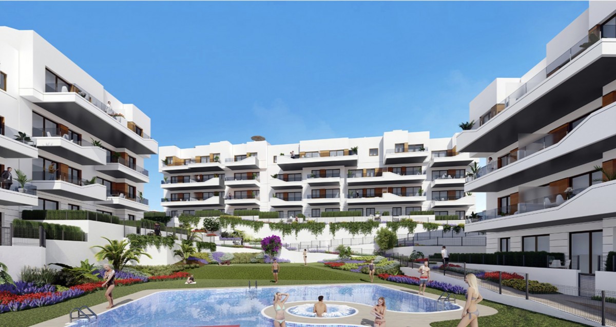 These beautiful apartments in this new residential area are distributed across 3 blocks on the ground floor plus three floors, with apartments featuring 2 and 3 bedrooms and 1 or 2 bathrooms. You decide where you live: ground floor apartments with private gardens, first or second floor apartments with large terraces designed to enjoy the light and views of the greenery and communal area, or magnificent penthouses on the third floor with solariums. All apartments have WiFi router installation and TV signal capture equipment installation in Spanish, Russian, French, and German. Another aspect to emphasize is the functionality and cozy interior design of the homes.