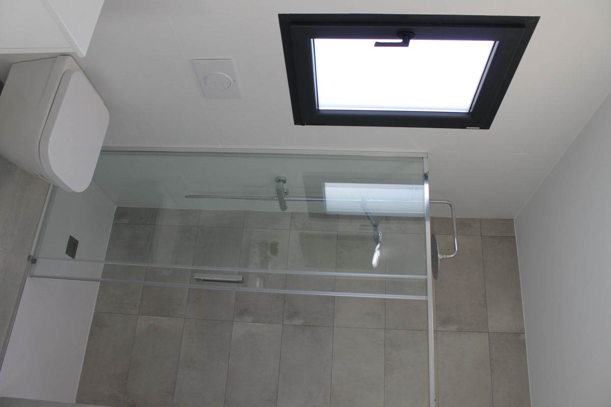 LED lighting inside and outside the property. Built-in wardrobes with drawers. Fully equipped bathrooms with suspended toilet, shower screens, vanity unit, illuminated mirror, and rain shower. Summer kitchen in the solarium. Pre-installation for ducted air conditioning. Parking space on the plot.